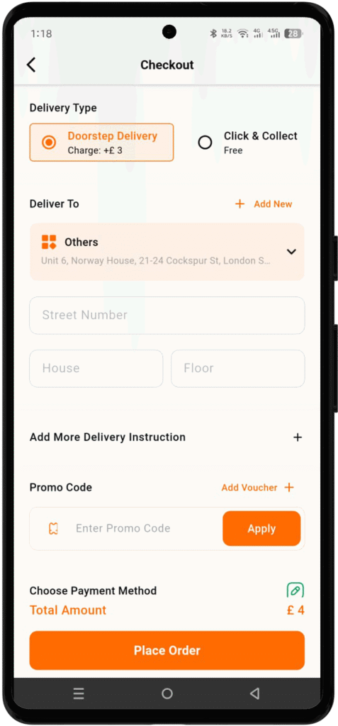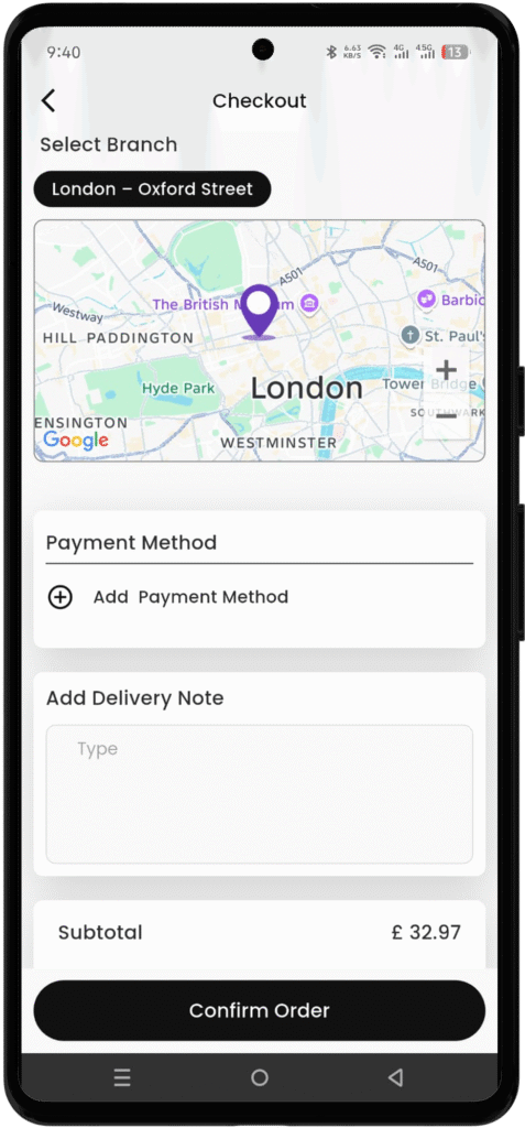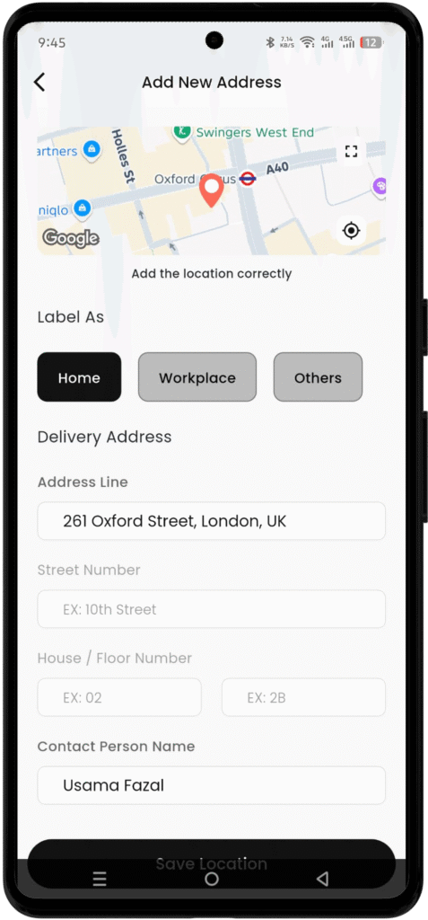 Add or label your delivery address using precise geolocation and map pin. Google Maps auto-completion ensures faster, error-free address entry for a frictionless checkout.
