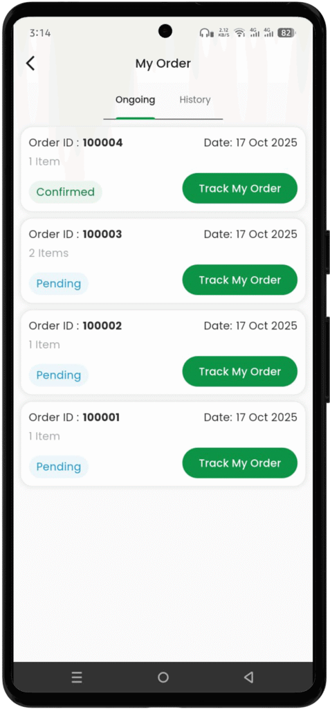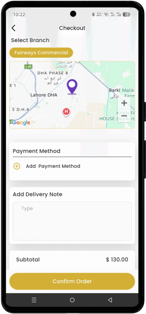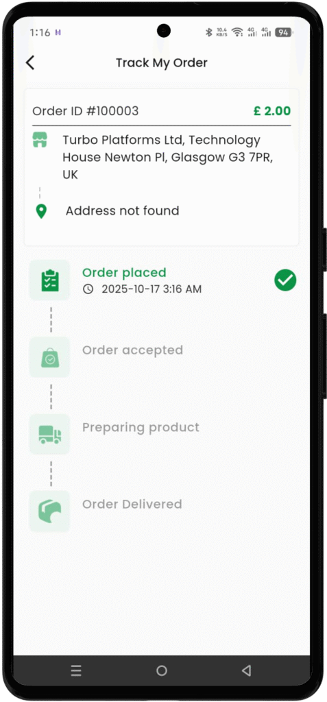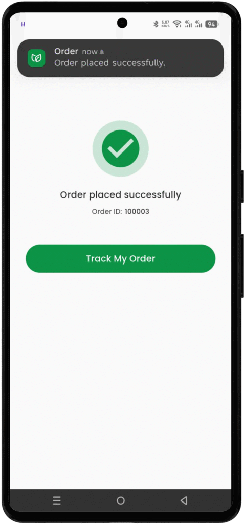 Track your order from confirmation to delivery in real time. Integrated with map-based updates and order status alerts for transparency and trust.